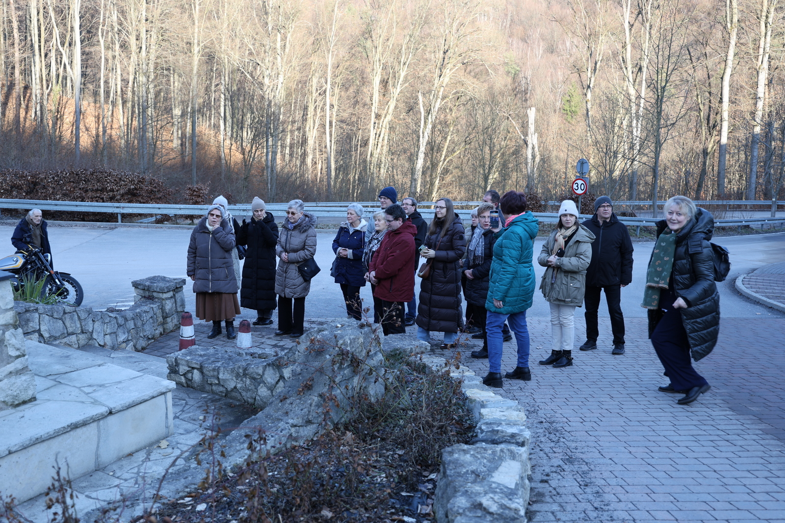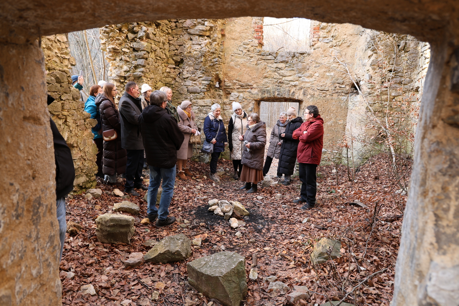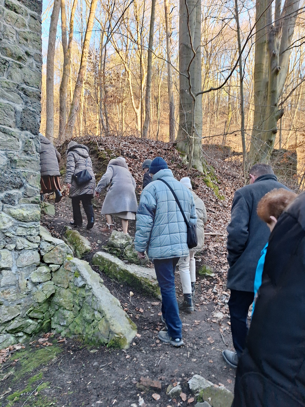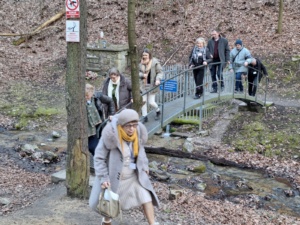 Następnie część osób pod przewodnictwem naszej siostry Wandy Bigaj, członkini czerneńskiej Wspólnoty udała się na spacer dróżkami karmelitańskimi obok pustelniczego mostu i do ruin dawnej furty klasztornej. Wanda opowiedziała historię i zmiany jakie w ciągu wieków dokonały się w tych miejscach. Ta ciekawa i barwna opowieść pozwoliła naszym siostrom (gościom) z Prowincji Warszawskiej, ale też i naszym członkom i członkiniom poznać głębiej przeszłość i dziedzictwo ojców Karmelitów Bosych w tej kolebce Polskiego Karmelu. Radość przebywania razem, wiosenna słoneczna pogoda zaowocowała wesołymi żartami i opowieściami. Te chwile połączyły nas w braterstwie i pozwoliły pogłębić przyjacielskie relacje.