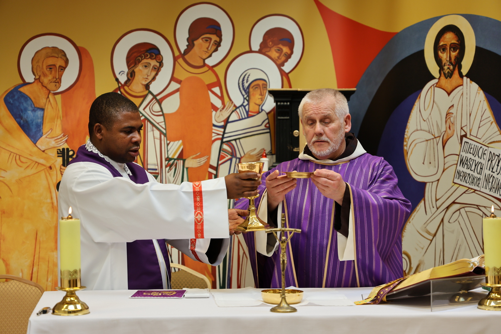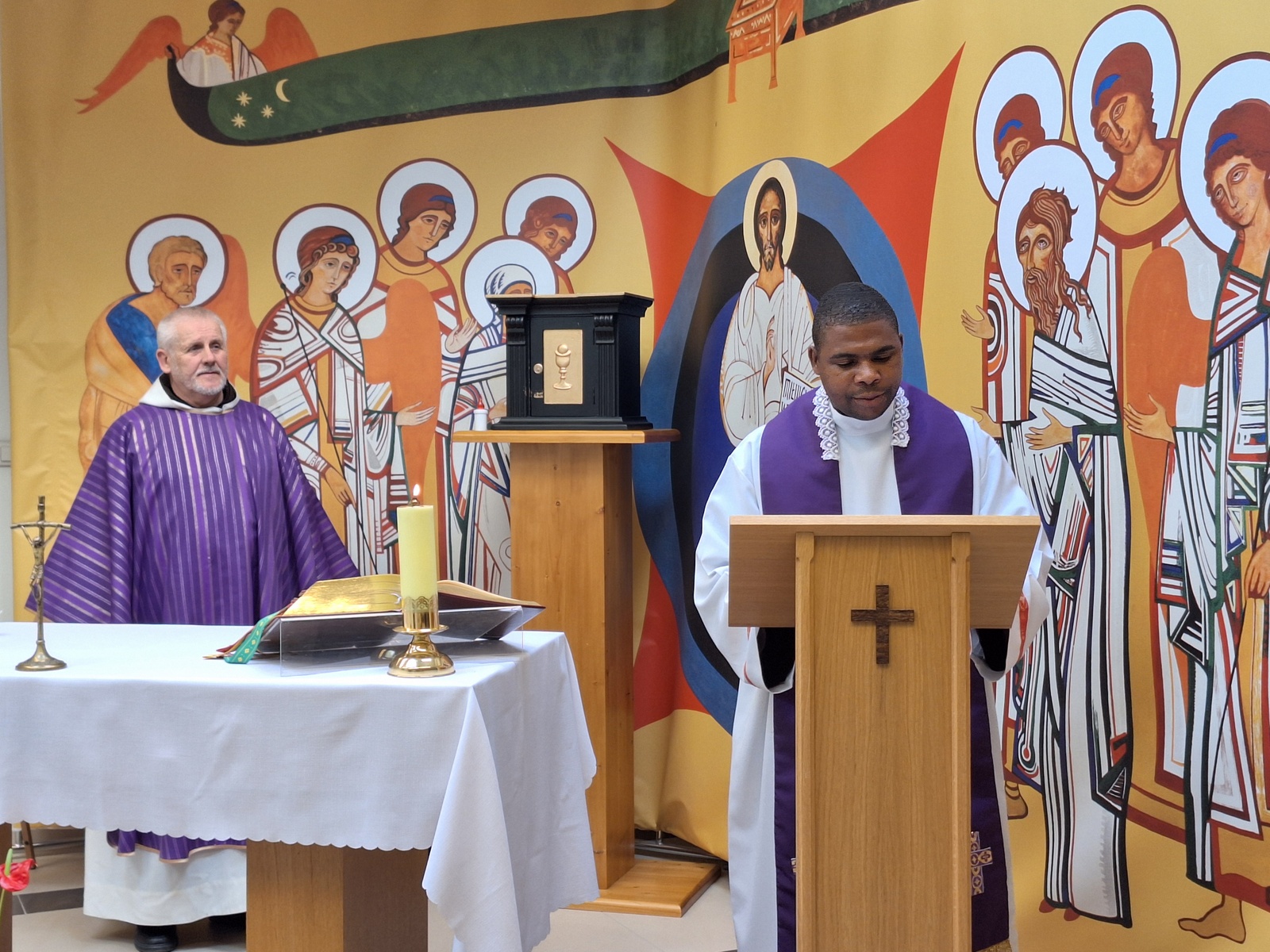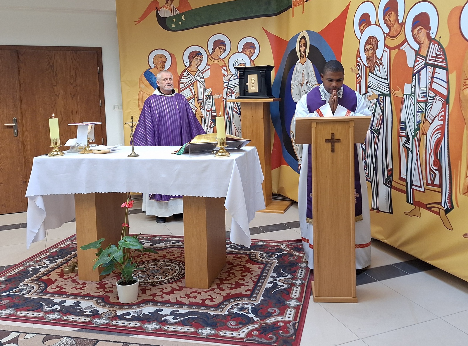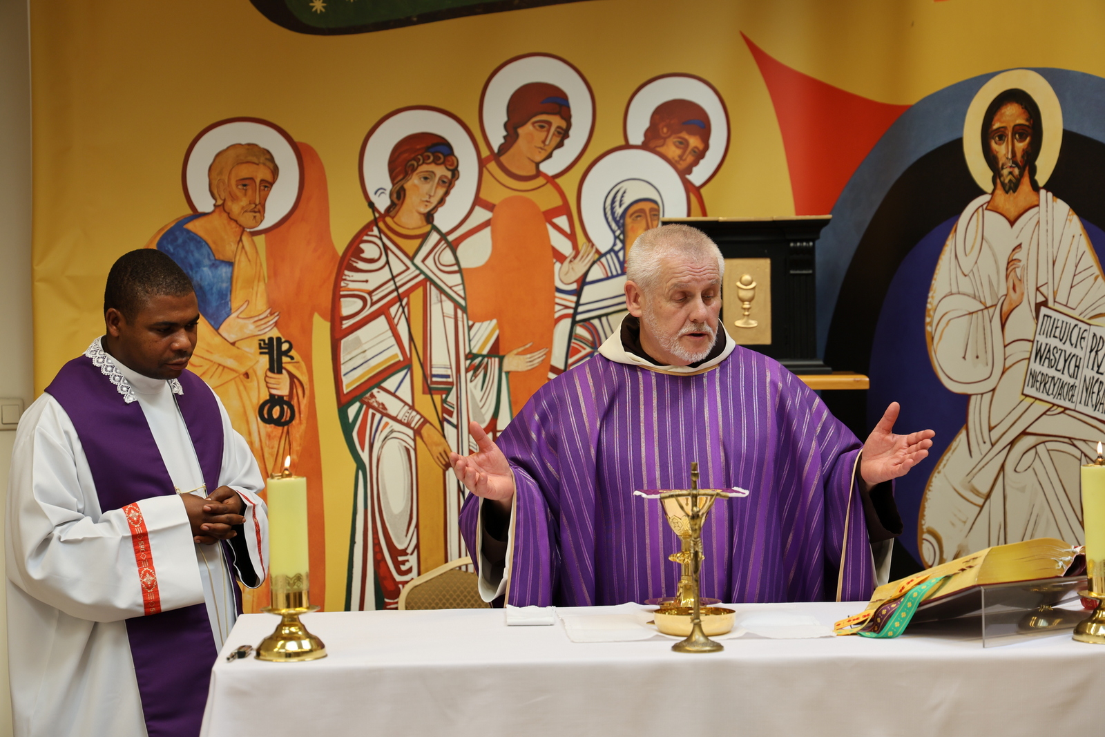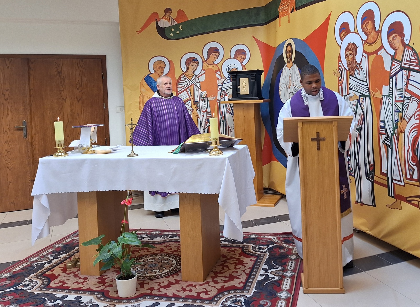 O godz. 12.00 w kaplicy Domu Rekolekcyjnego obaj ojcowie celebrowali Mszę św.