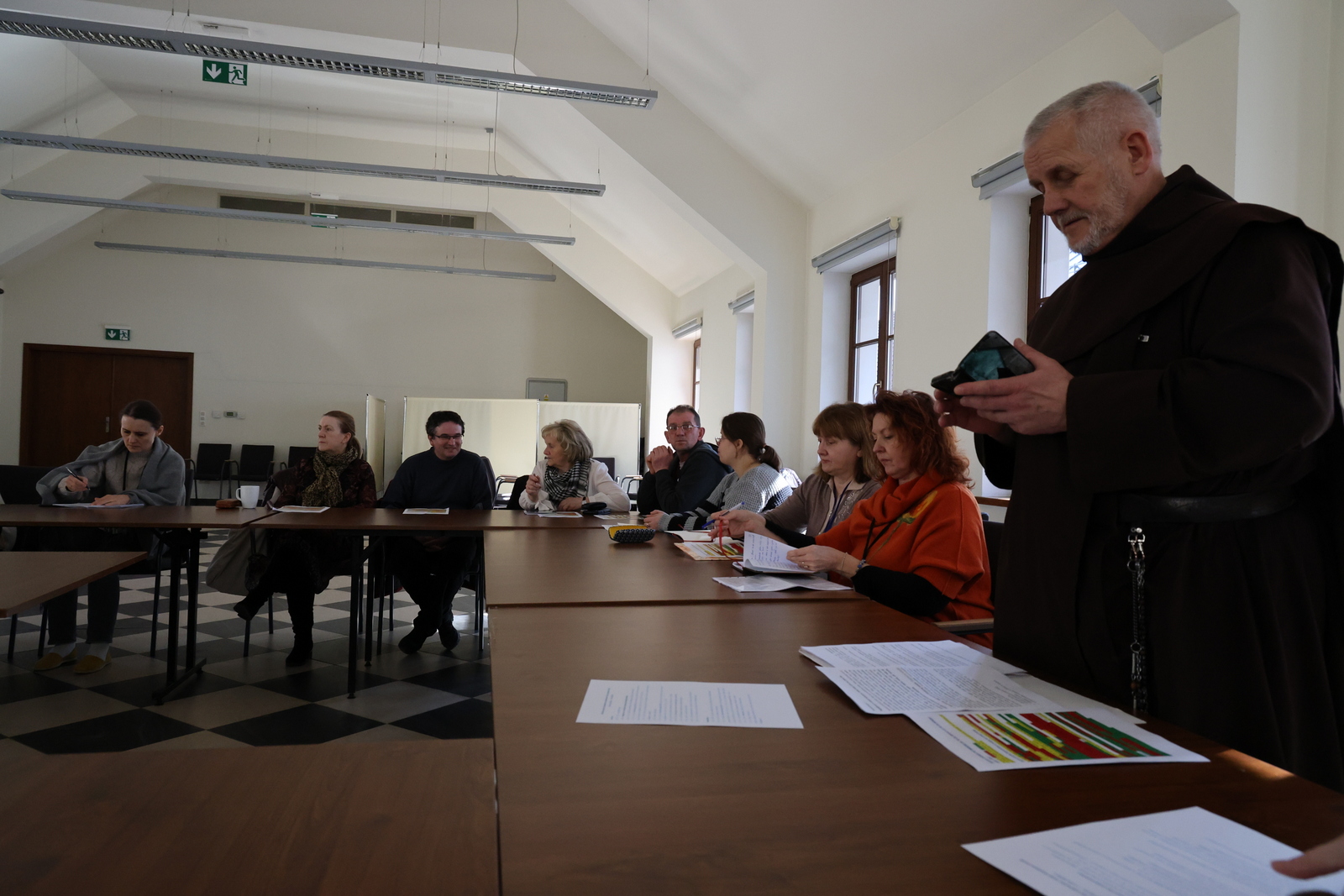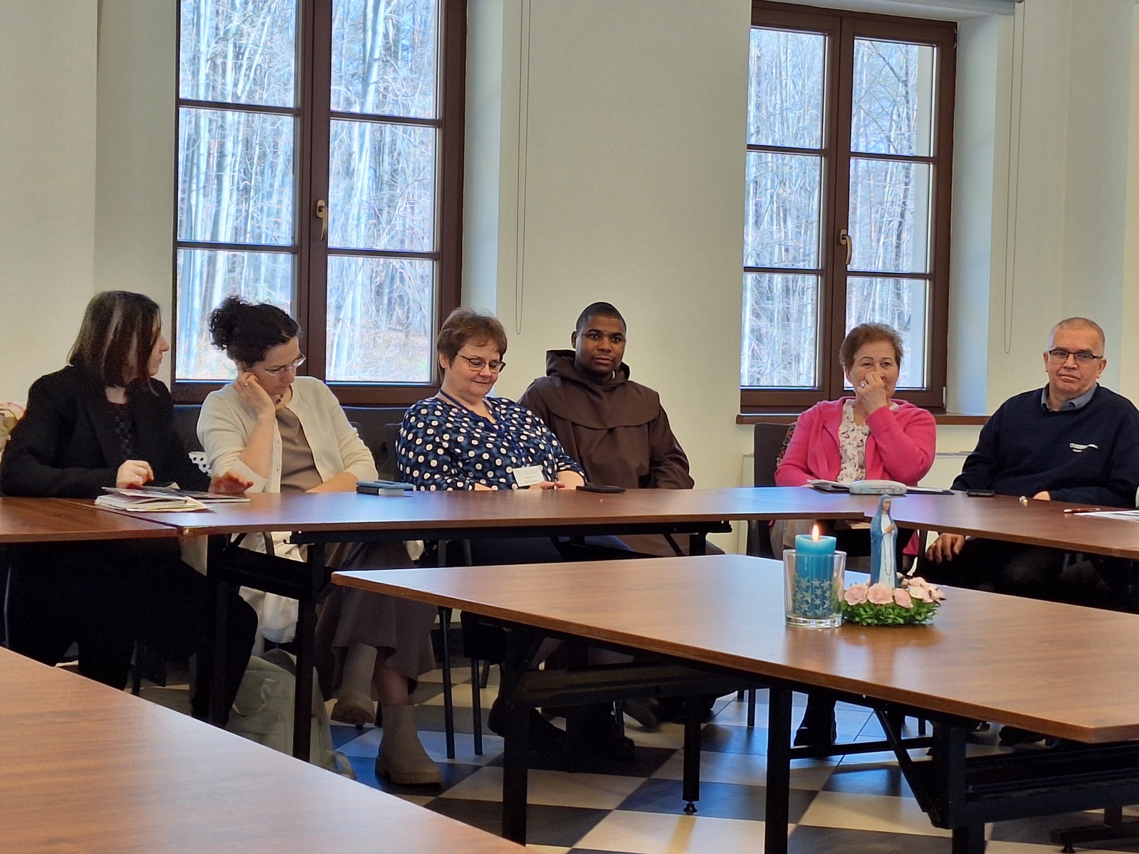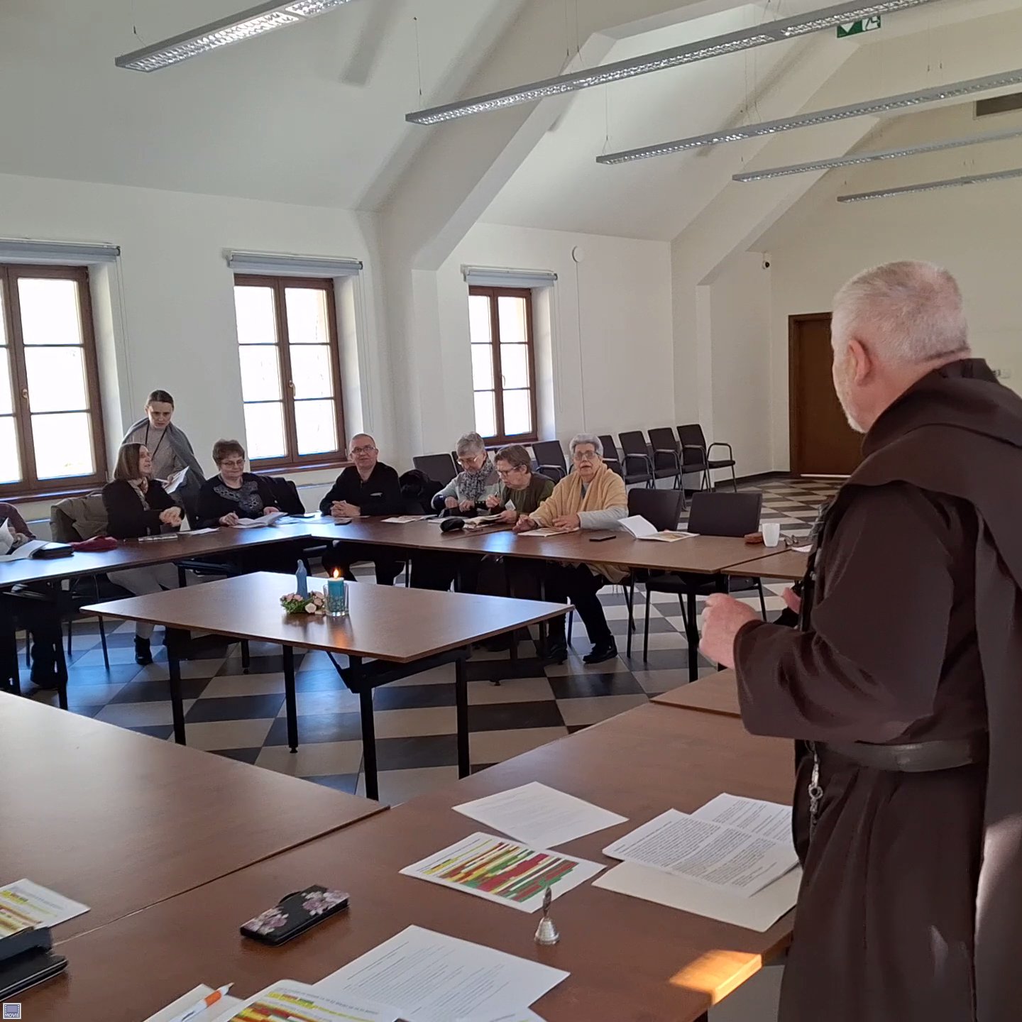 Po śniadaniu wysłuchaliśmy trzeciej, ostatniej konferencji o. Jana: „Trzy misyjne posłania na podstawie: 1) pierwsze powołanie Piotra – Mt 4, 18-22; Mk 1, 16-20; Łk 5, 1-11/ 2) pierwszy misjonarz z Gerazy – Łk 8, 26 –40; Mk 5, 1-21; Mt 8, 28-34/ 3) drugie powołanie Piotra – J 21,1-23”. Treści coraz głębiej zapadały w nasze wyciszone serca. Będzie nad czym rozmyślać w domowej codzienności.