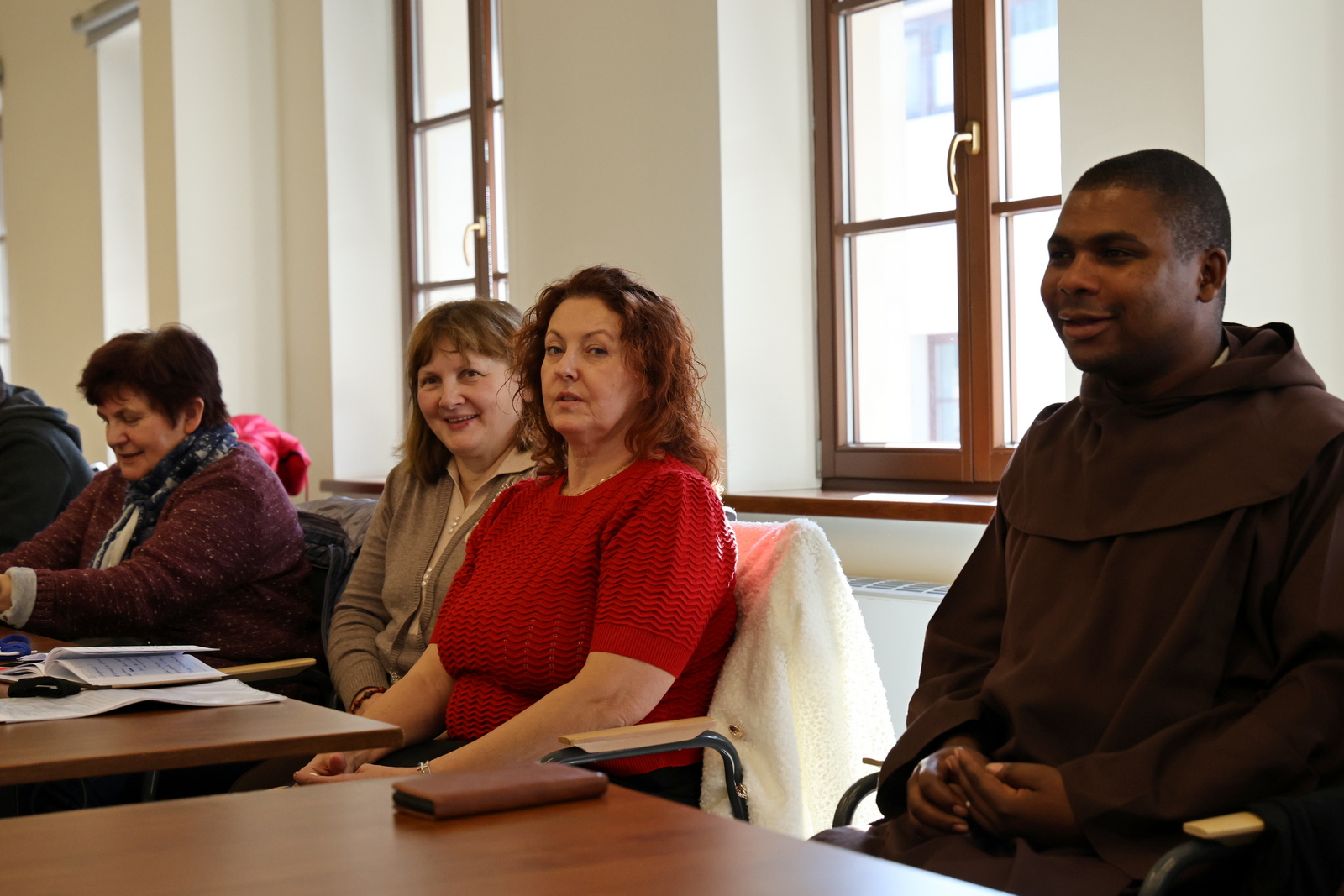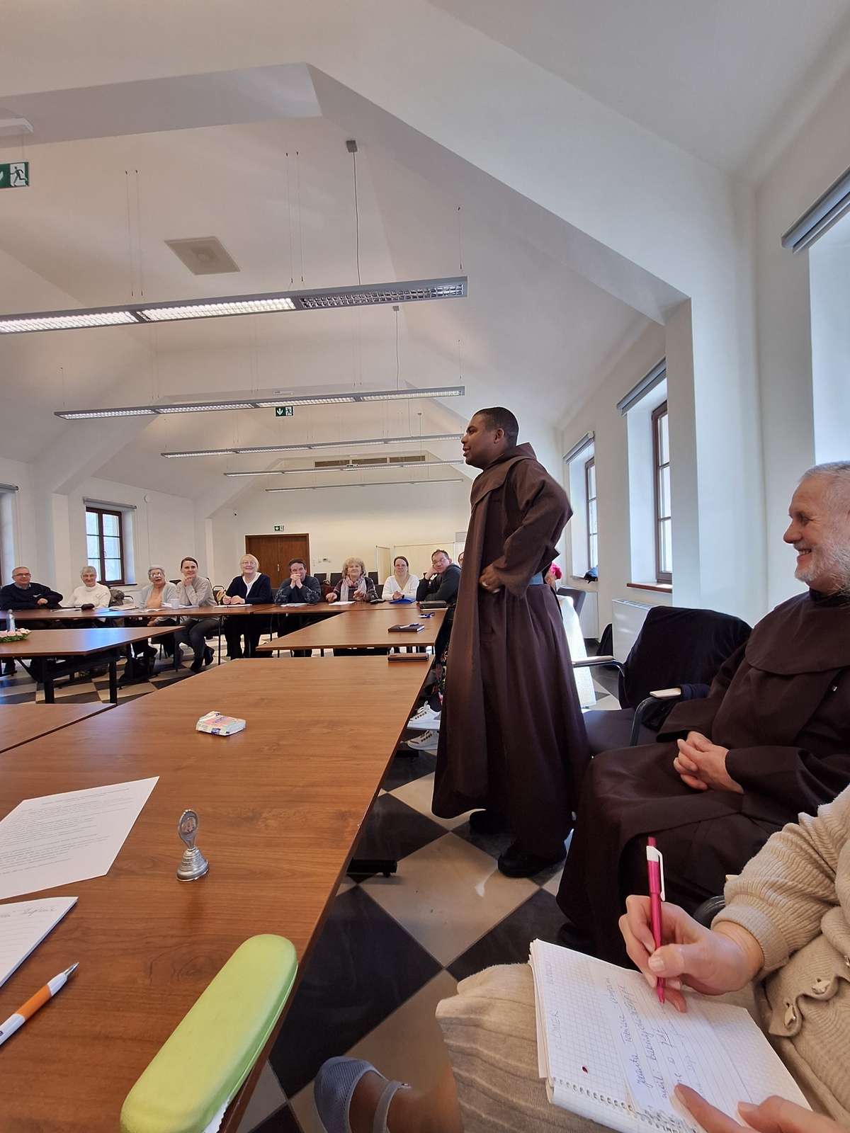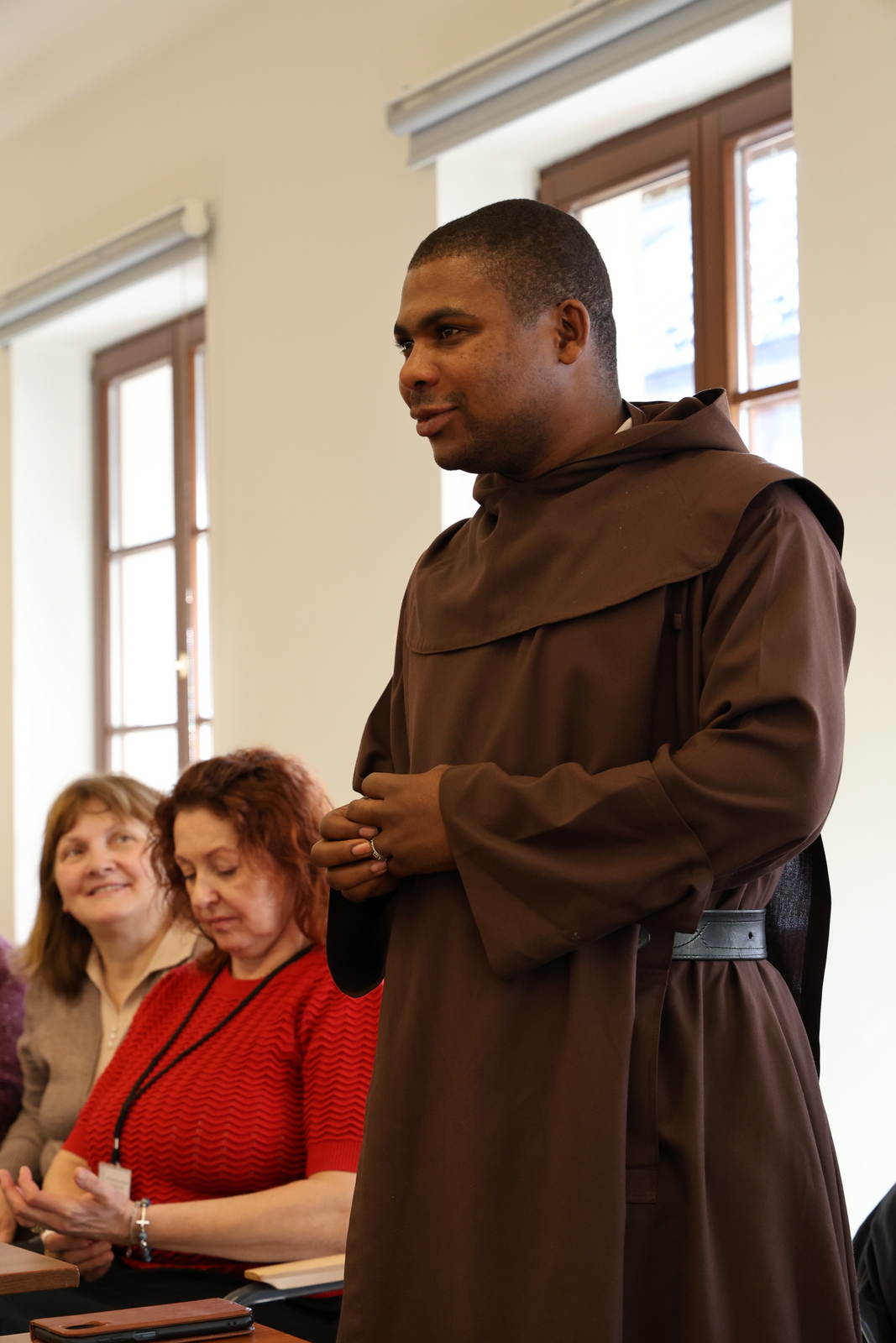 W tej ostatniej konferencji brał udział szczególny gość; o. Omer Nshimirimana od Matki Bożej OCD, który przybył do Polski na Kapitułę Prowincjalną. Pragnął spotkać się ze wszystkimi, którzy wspierali go w drodze do kapłaństwa i prosić o dalszą współpracę w jego duszpasterskiej działalności w Rwandzie i Burundi. Jest najmłodszym ojcem – magistrem nowicjatu, dlatego też prosił o wsparcie modlitewne. Wzmocnił też naszą nadzieję, cytując słowa św. Jana Pawła II i jego mocne wezwanie „Nie lękajcie się!”. Nie martwcie się – mówił – tym, że kościoły pustoszeją, ale mocno trwajcie w wierze i nauce Chrystusa. Bądźcie jak gąbka, która nasiąknie wodą, a później rozlewa ją na każdego, kogo spotka. Tak też my mamy nasiąkać do pełna karmelitańską duchowością i rozlewać, zraszać wszędzie, gdzie nas Pan Jezus pośle z misją.