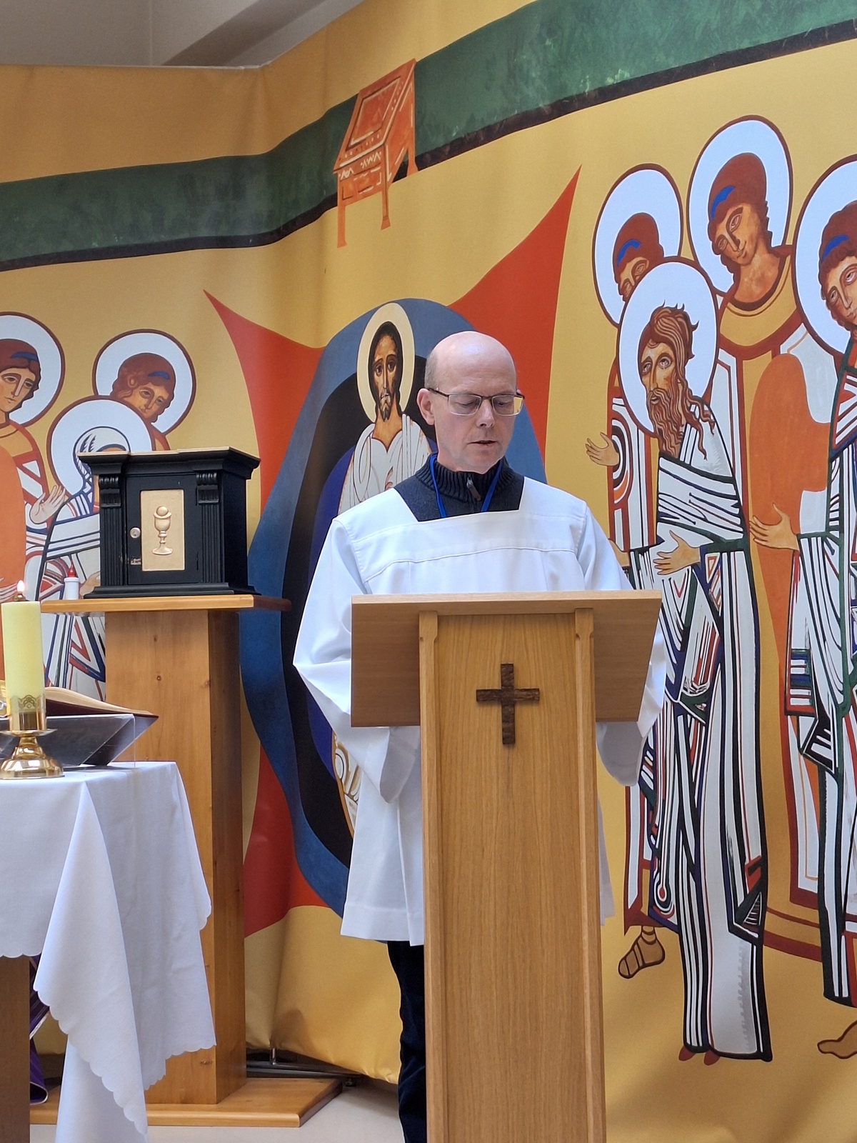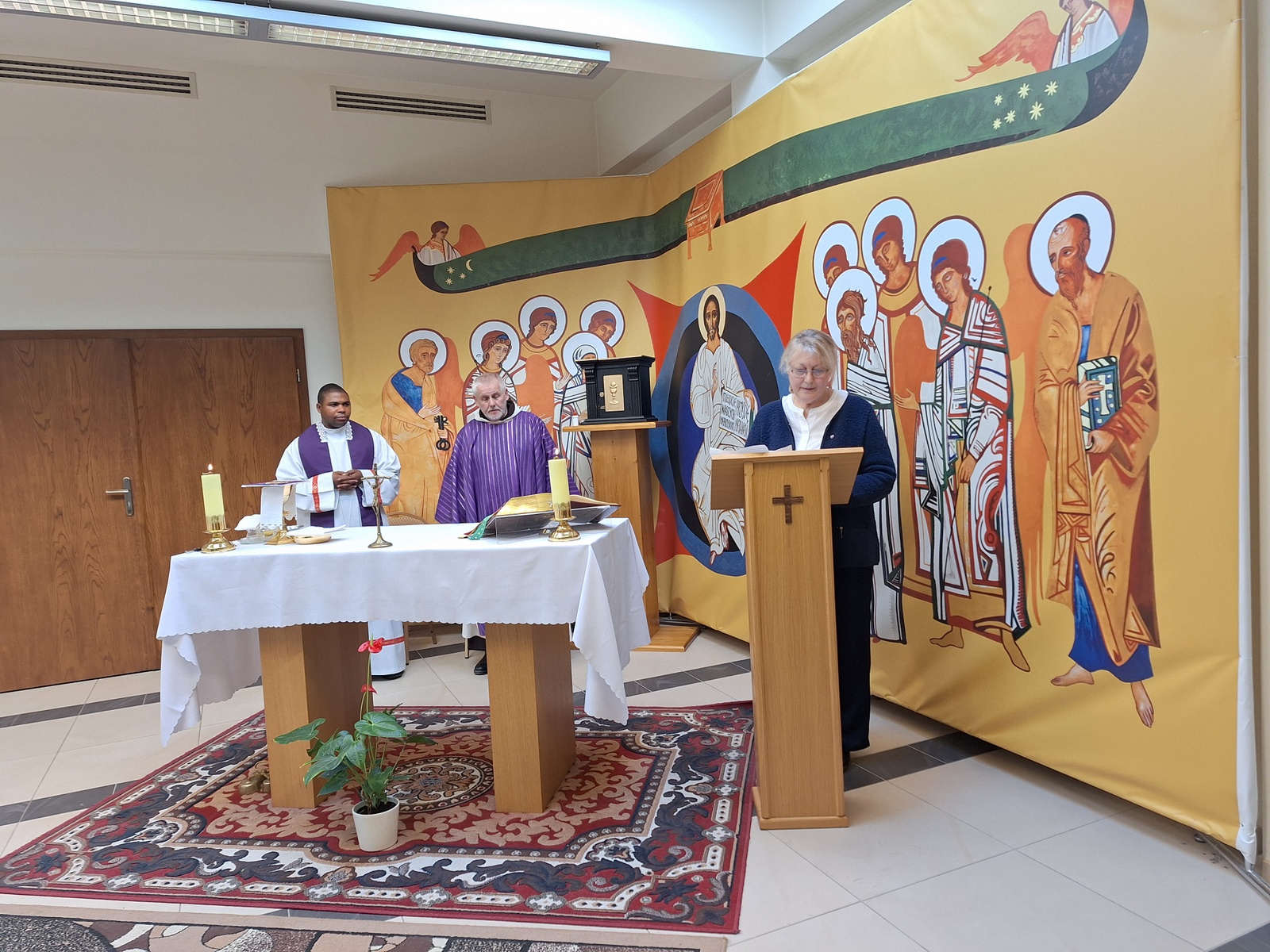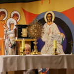 Niedzielę rozpoczęliśmy Jutrznią i osobistą adoracją Najświętszego Sakramentu. Po odśpiewaniu hymnu, każdy osobno miał powoli modlić się słowami Psalmów, by Pan mógł bardziej nas dotykać w Jego Słowie i leczyć, powoływać do misji, do dalszej drogi, uczyć patrzenia na Niego, by móc chodzić po wodzie naszego życia i całego wzburzonego świata.