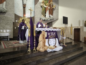 W czwartą niedzielę Wlk. Postu – 15 marca 2026 r. na zaproszenie wspólnoty Świeckiego Zakonu Karmelitów Bosych z Wolbromia, z parafii pw. Podwyższenia Krzyża Świętego, przybył o. Omer Nshimirimana OCD.O. Omer w tym dniu w parafii sprawował Mszę św. dla dzieci o godz.10.30. W czasie kazania wygłoszonego dla dzieci opowiedział jak wygląda Misja w Burundii. Dzieci były bardzo zainteresowane i zadawały dużo pytań.