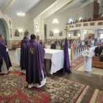 Następnie odprawił Mszę św. o godz. 12.00 wraz z o. asystentem wspólnoty OCDS Łukaszem Piskulakiem OCD. Była to Msza św. w której uczestniczyli też członkowie wspólnoty Świeckiego Karmelu podczas ich comiesięcznego spotkania wspólnotowego. Wspólnota czynnie angażowała się w oprawę liturgiczną Eucharystii. Słowo Boże wygłosił ojciec asystent Łukasz. Wierni modlili się podczas Eucharystii w intencji o. Omera OCD, parafii, w której posługuje oraz o cud za przyczyną sł.B. Kunegundy Siwiec świeckiej karmelitanki i wyniesienie Jej na ołtarze. Na zakończenie mszy miała miejsce pół godzinna Adoracja Najśw. Sakramentu prowadzona przez ojca asystenta.
